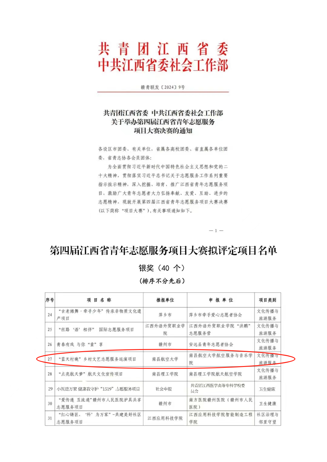 推报的“蓝天村晚”乡村文艺志愿服务巡演项目在大赛中表现出色,荣获银奖。