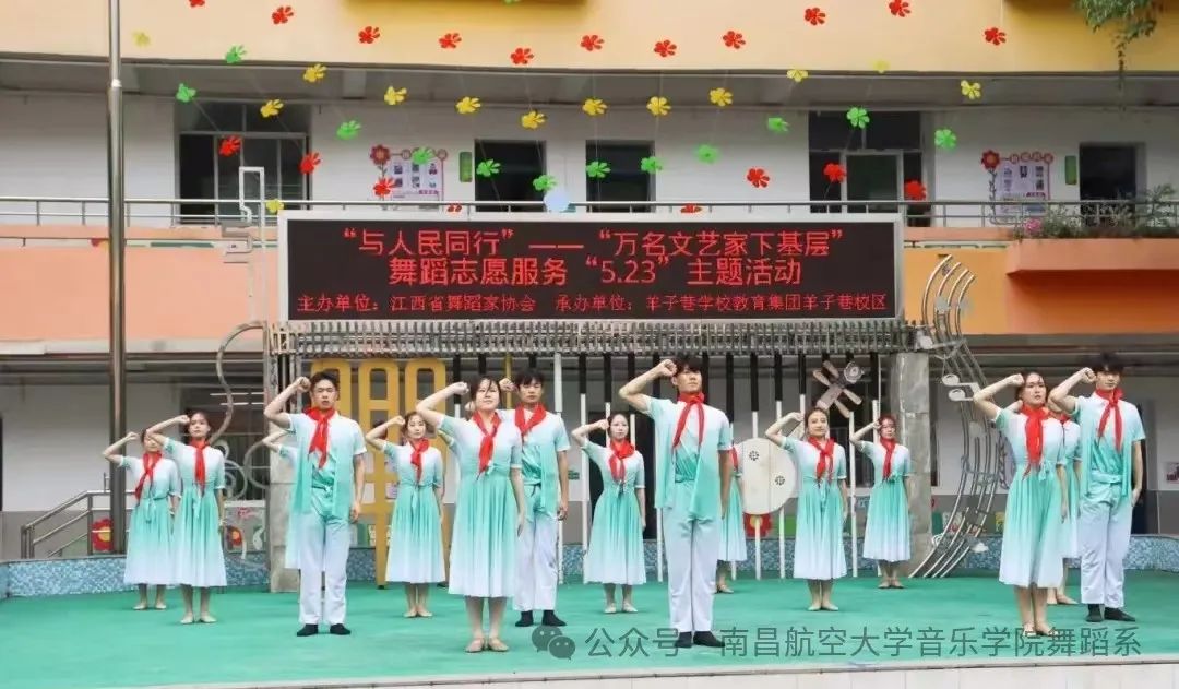 为深入学习贯彻习近平文化思想和习近平总书记考察江西重要讲话精神,广泛践行和弘扬社会主义核心价值观,进一步推动“强基工程”——文艺助力基层精神文明建设行动落地见效,在第 11 个“中国文艺志愿者服务日”来临之际,江西省舞协定于2024年 5 月 22 日在南昌市羊子巷小学开展“万名文艺家下基层”舞蹈志愿服务“5.23”主题活动。新澳彩资料 张南老师受邀并带领舞蹈系 221521 班学生及编排的作品《信仰的红》参加本次舞蹈志愿服务活动,助力基层精神文明建设。