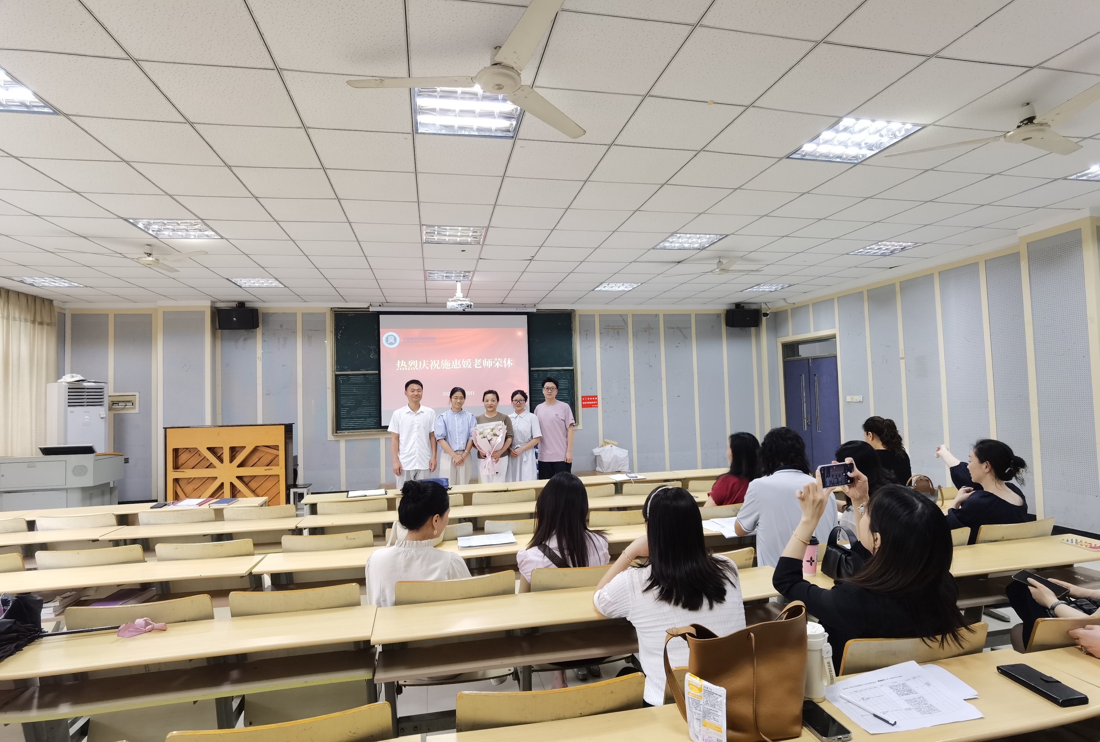 最后,万维维代表全院教职工向施惠媛老师献花,并合影留念。